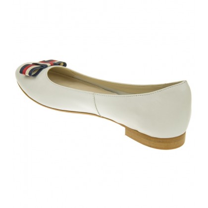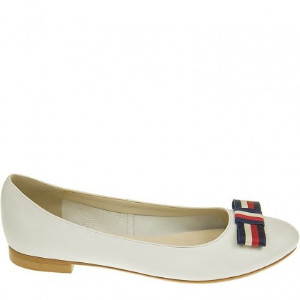 Baleriny damskie Alexio Giorgio 047 BCG w białym kolorze ze skóry licowej z kokardą