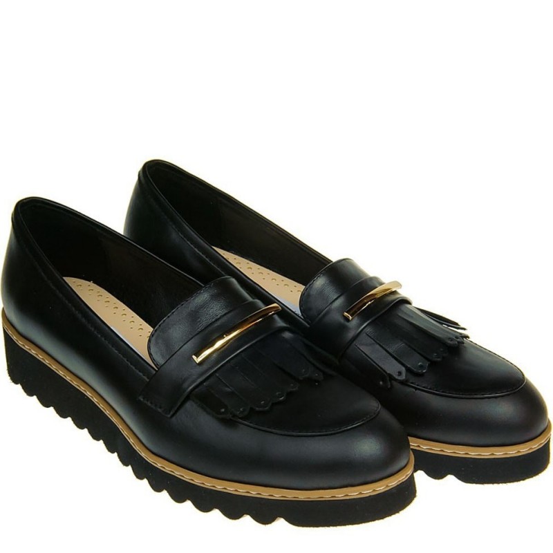 Mokasyny damskie Alexio Giorgio 4071 CZL na koturnie ze skóry licowej w czarnym kolorze